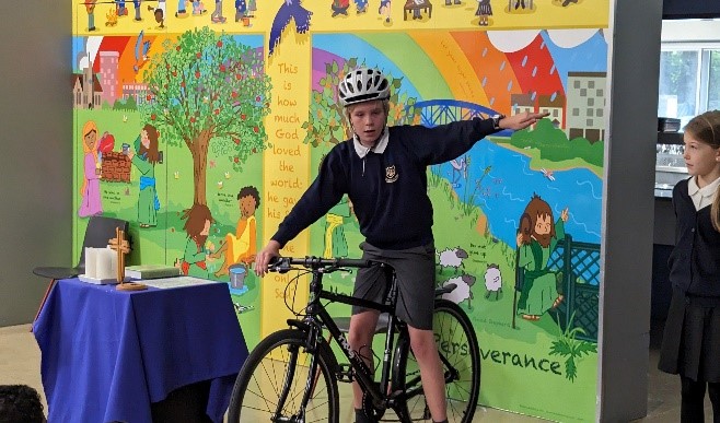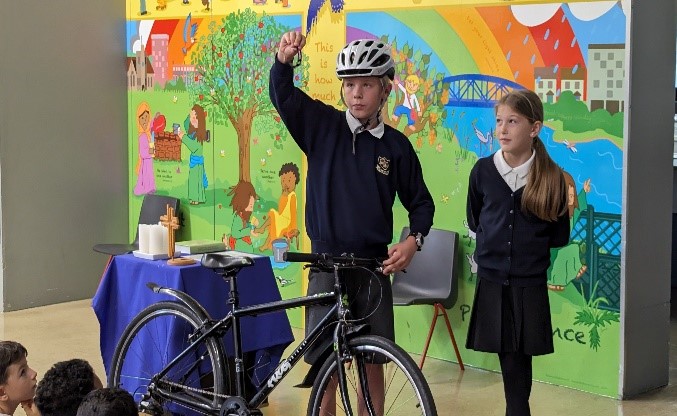Our Junior Road Safety Officers also reminded everybody how to cross the road and cycle safely. Well done, Ronnie and Sam!